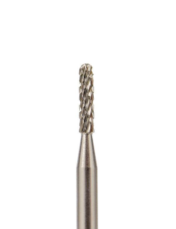 El limado subungueal con la ayuda de esta broca es más sencillo que nunca, el alto grano pero la forma en que están dispuestas las hojas de corte, la convierten en una broca extremadamente segura que no dañará ni siquiera el hiponiquio más sensible. La forma cilíndrica garantiza el acceso a los espacios más difíciles, y la punta redondeada no hará daño aunque toquemos accidentalmente el pliegue o el hiponiquio.