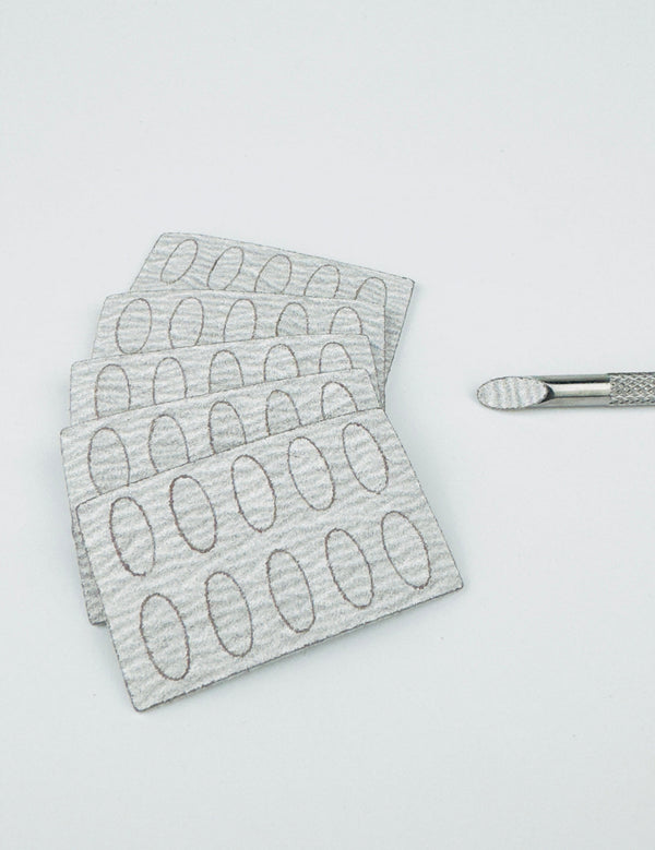 Fabricadas con papel abrasivo de alta calidad de origen japonés, diseñado específicamente para la herramienta para cutículas con punta de tipo "palo de naranjo", las almohadillas autoadhesivas con respaldo de esponja serán suaves pero eliminarán incluso las cutículas más secas o adherentes.