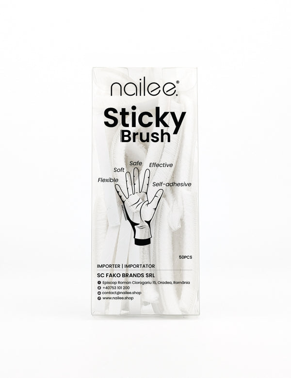 A partir de ahora quitar el polvo es un gesto sencillo y automático con el Sticky Brush pegado directamente a tu guante cerca del dedo meñique, podrás usarlo durante toda la manicura y ya no tendrás que hacer movimientos repetitivos innecesarios para quitar el polvo con la ayuda del clásico cepillo y seguro que tu cliente quedará encantado de que sea un producto de un solo uso.